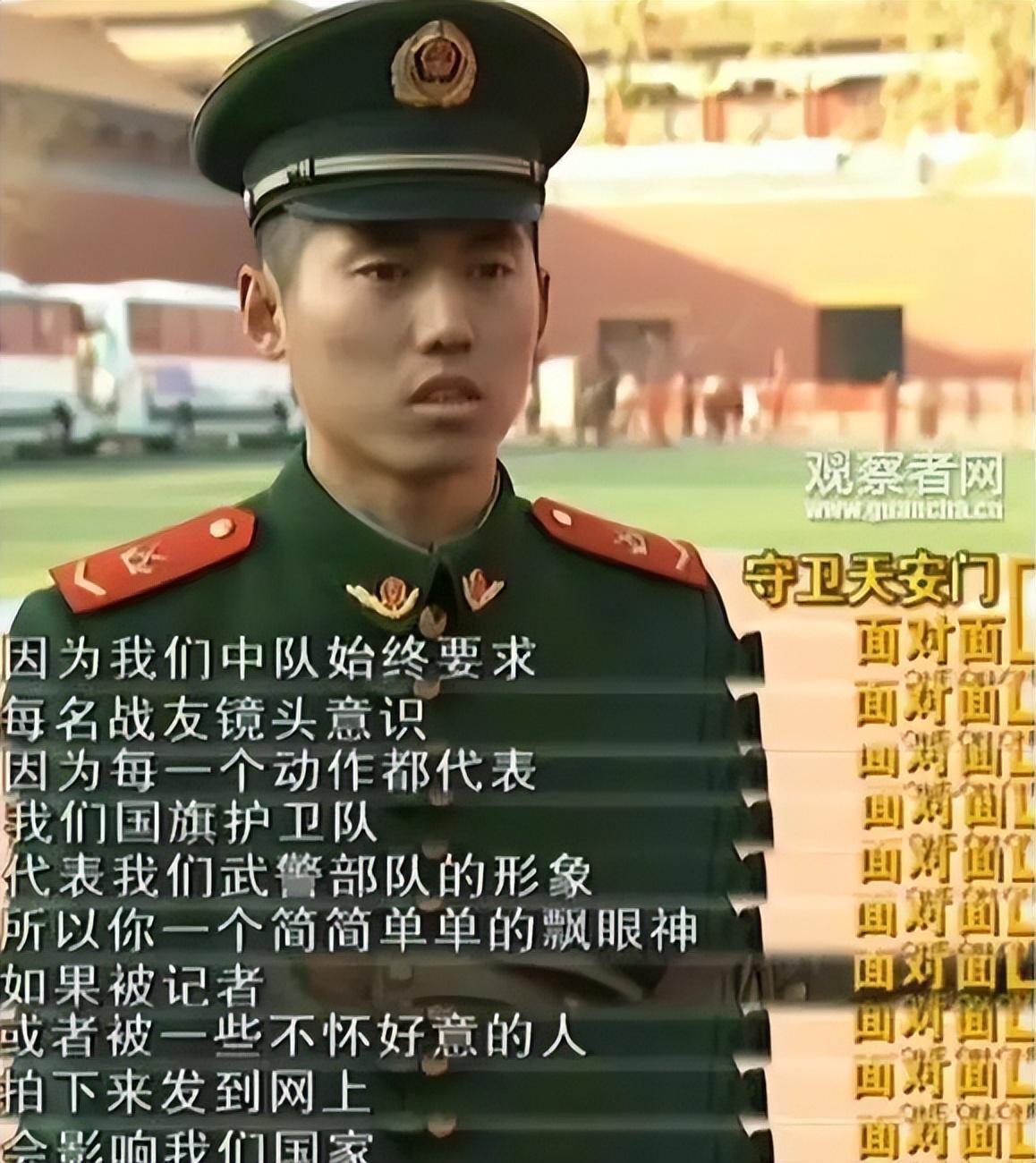 17岁那年,他报名参军,被选入天安门国旗护卫队,训练极其艰苦,背绑十字架、头顶砖块、脖子插别针、挥哑铃练臂力,每天超11小时的训练,几乎没有喘息空间。