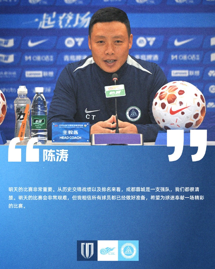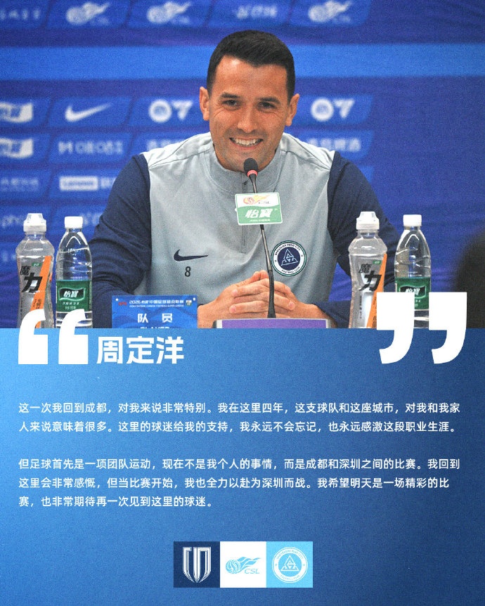 【赛前声音🎙】主教练陈涛和球员周定洋介绍本场比赛的备战情况 xiaoqiao 2026年03月07日 07:05 26 0 3月6日(周五)19:35,2026怡宝中超联赛第1轮,深圳新鹏城前往客场五粮液文化体育中心专业足球场挑战成都蓉城。今天下午,主教练陈涛和球员周定洋出席了赛前发布会,并分别介绍本场比赛的备战情况。